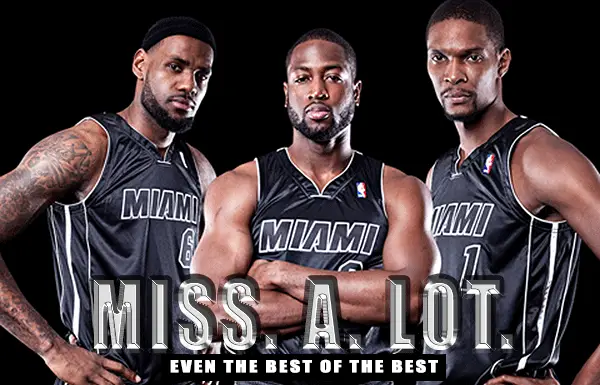 How different would marriages be if couples accepted the stats of the NBA’s superstars as their measure? The Heat’s three top players miss 40-50 percent of their shots. As a team, the Heat also miss about 30 percent of undefended shots from the free throw line; shots these players have practiced thousands of times.